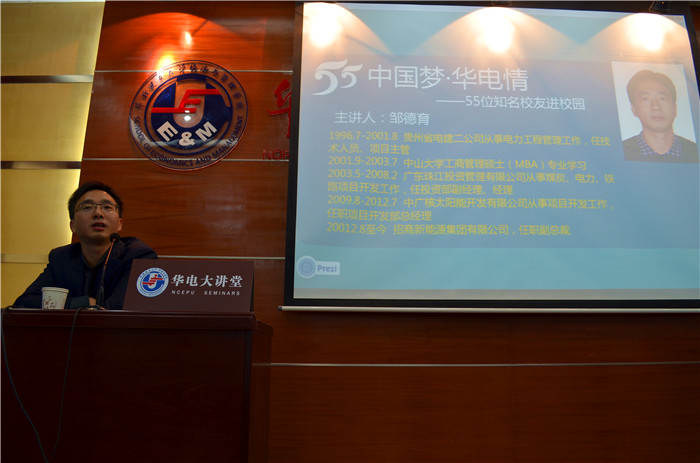 11月6日晚上,招商新能源副总裁邹德育先生在经济与管理学院报告厅举行了一场关于新能源项目的开发和利用的讲座。