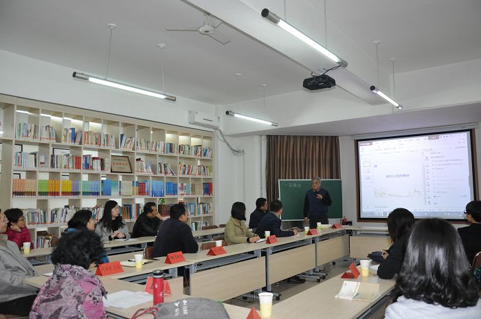 接着来自可再生学院的王永老师为大家介绍了“什么教学内容适合板书”,他围绕常见的教学手段、教学知识的表达分类和适合板书的教学内容等几个方面进行了详细的阐释。他认为当代教师常用的教学方法包括:口头语言、文字表述、印刷教材、电子视听设备、多媒体网络技术等,并举例介绍了规范的逻辑推理知识如标准符号表达、递进的推理过程和层次性的计算步骤在教学中使用板书的重要性。